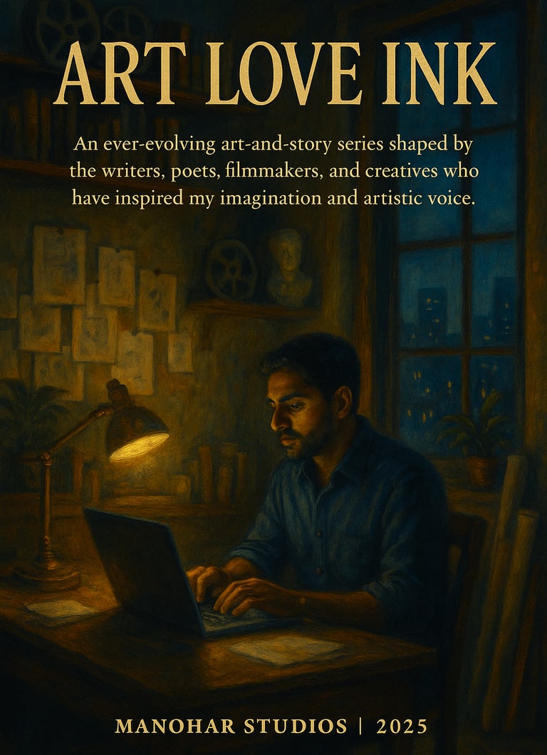 ART LOVE INK is dedicated to Krishna, a little girl in my family. It explores how iconic figures in literature, cinema, and art have shaped my creative vision and artistic themes.